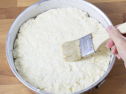 Turn the dough out into the prepared springform pan. Gently and evenly pat the dough out to the edges of the pan.