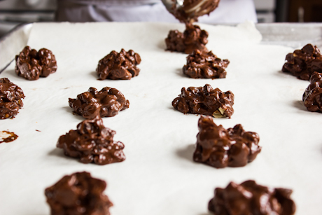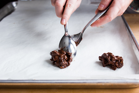 7. Drop cookies by heaping spoonfuls onto a prepared baking sheet, about 2 inches (5 cm) apart. Bake for 11-14 minutes and cool on wire racks. Makes 24 cookies.