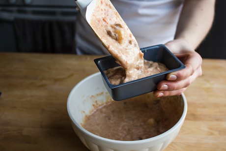 6. Pour the batter into the prepared muffin tins or loaf pan and bake until an inserted toothpick comes out clean, about 15 – 20 minutes for cupcakes, 30 – 40 minutes for a loaf.