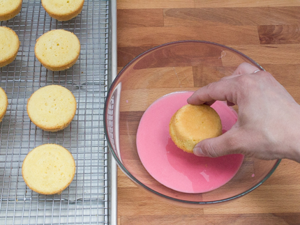 Allow cakes to cool in the tin for five minutes, then remove and transfer to a rack to cool completely before icing.