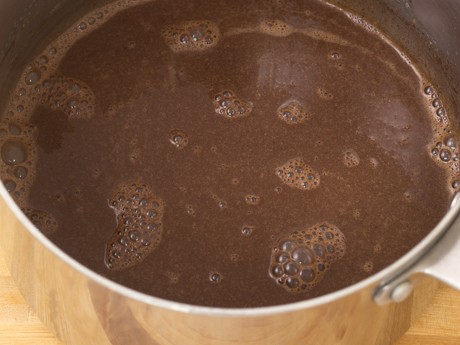 1. In a medium saucepan, whisk together cream and milk. Warm over medium-low heat. Remove from heat and add chocolate and stir until it has completely melted and is smooth.