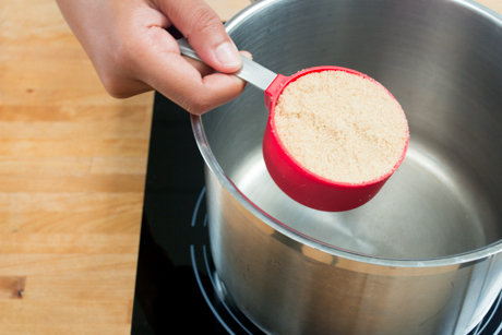 1. In a medium sauce pan combine the Redpath® Golden Yellow Sugar, ginger, chili flakes, salt and coconut milk. Over medium heat begin stirring the mixture. You want to just bring it to a simmer, stirring until the sugar is dissolved.