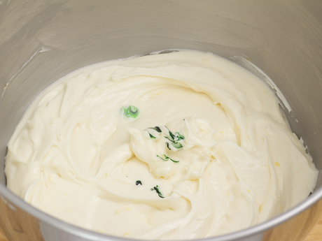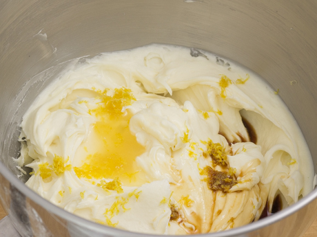 3. Add lemon juice, lemon zest, and vanilla extract, and blend until creamy and fluffy. Add food colouring, and, if needed, the heavy cream. Cream the mixture until the food colouring is evenly distributed throughout the buttercream.