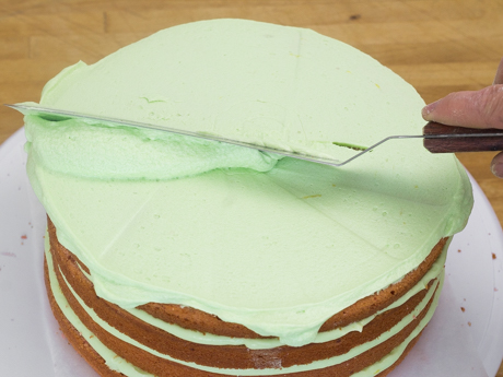 6. Once the top and sides have been frosted, place into the fridge to chill and set; about 15 minutes.
