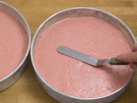 *To enhance the strawberry flavour of the cake, slice some fresh strawberries and arrange them on the buttercream between each cake layer.
