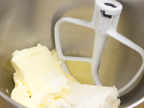 1. In the bowl of a stand mixer with the paddle attachment, cream together room temperature cream cheese, butter, and salt until creamy and smooth; about 2 minutes.