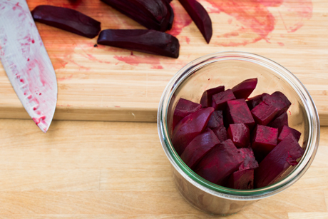 Mettez des gants quand vous manipulez les betteraves afin d’éviter de tacher vos mains.