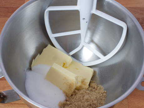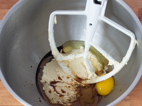 Crémer le beurre, le Sucre Granulé Redpath® et la Cassonade Dorée Redpath® à l’aide d’un batteur sur socle muni du fouet plat pendant trois minutes. Ajouter l’oeuf, l’extrait de vanille et l’expresso en poudre et bien incorporer.