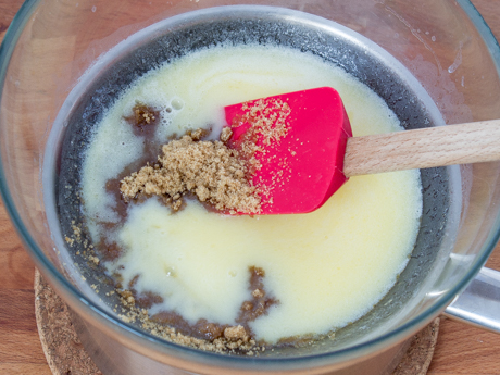 Combiner le beurre, le lait et le sel dans un bol moyen. Mettre le bol sur une casserole d’eau frémissante. Remuer jusqu’à ce que le beurre soit fondu et que la préparation soit chaude. Ajouter la Cassonade Foncée Redpath® et remuer jusqu’à ce que la cassonade soit dissoute. Retirer du feu.