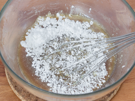 Pour éviter que le glaçage ne durcisse, mettre le bol par-dessus une casserole d’eau chaude et remuer.