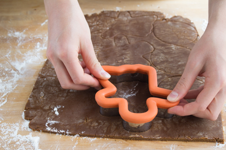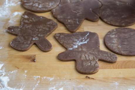 6. Avec un moule à biscuit, couper des formes et placez les à deux pouces de distances l’une de l’autre sur une plaque à cuisson tapissée de papier parchemin.