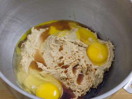 Crémer le beurre, la Cassonade Demerara Redpath® et le Sucre Granulé Redpath® pendant trois minutes à l’aide d’un batteur sur socle muni du fouet plat.