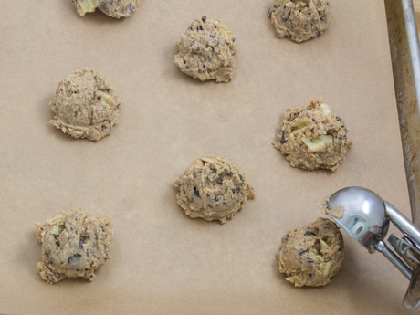 Diviser la pâte à biscuits également à l’aide d’une petite cuillère à crème glacée et déposer sur la plaque à biscuits. Réfrigérer pendant 30 minutes.