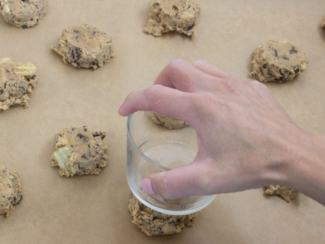 Écraser chaque biscuit avec le dessous d’un verre.
