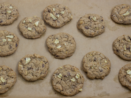 Laisser tempérer pendant cinq minutes puis transférer les biscuits sur une grille.