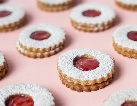 Tamiser le Sucre à Glacer Redpath® sur les biscuits du dessus (ceux avec des trous), déposer sur les biscuits garni de confiture et appuyer légèrement.