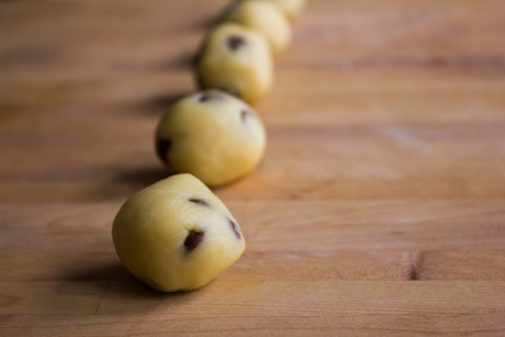 6. Rouler en boule environ 1 c. à soupe de pte, et placer sur une plaque tapissée de papier parchemin.