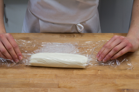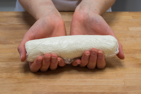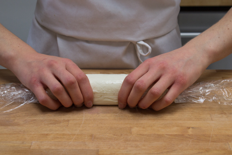 Sortir le rouleau de fromage à la crème du réfrigérateur et déballer-le soigneusement du plastique. Laisser le rouleau sur la pellicule plastique car vous l’utiliserez pour garnir le fromage.