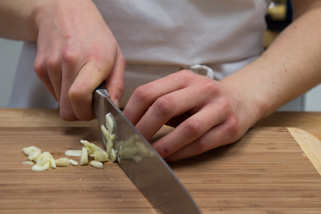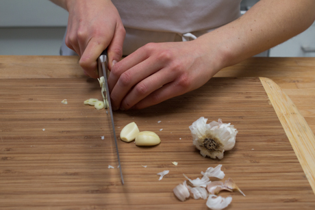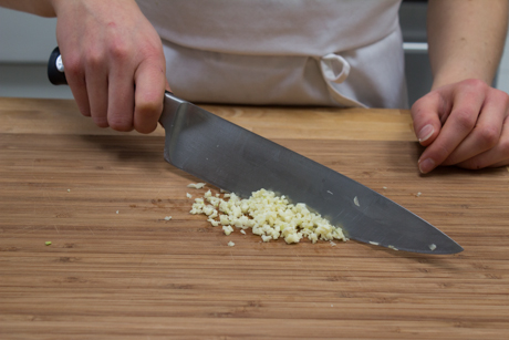 Émincer l’ail très finement, puis incorporer le fromage à la crème jusqu’à ce qu’il soit bien réparti dans le mélange.