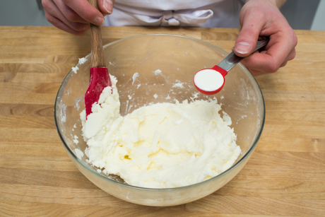 1. Dans un bol, battre le beurre jusqu’à ce qu’il soit lisse, puis ajouter le sucre à glacer et la crème jusqu’à consistance lisse.