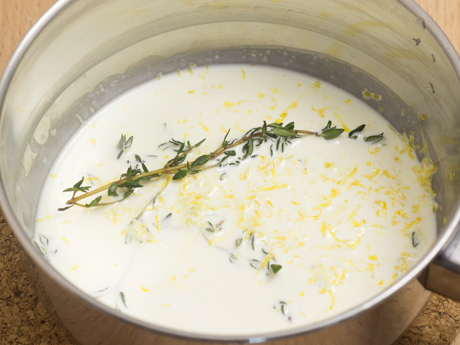- Porter la crème, le zeste et le thym à mijoter dans une casserole moyenne. retirer du feu, couvrir et laisser épaissir pendant 30 minutes. Mettre le chocolat blanc dans un bol résistant à la chaleur et réserver. Remettre la préparation de crème sur le feu et porter à ébullition. Filtrer immédiatement à l'aide d'un tamis au-dessus du bol réservé de chocolat blanc. Laisser agir deux minutes puis ajouter le beurre en remuant jusqu'à consistance lisse. Si la préparation se sépare, ajouter une c. à table de crème et mélanger jusqu'à homogénéité. Ajouter les dés de citron confit et réfrigérer pendant au moins une heure.