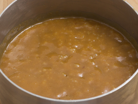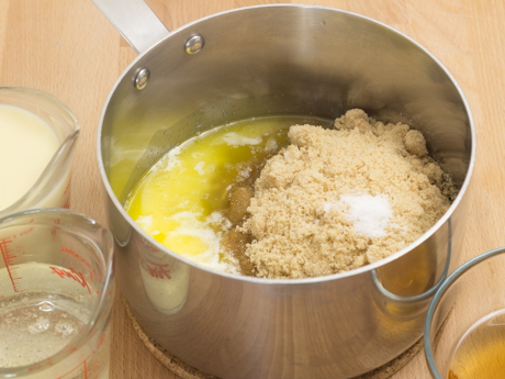 - Faire fondre le beurre à feu moyen dans une casserole à fond épais. Ajouter le Sucre Granulé Redpath®, le sirop de maïs, le lait condensé, ¼ tasse (60 ml) du whisky et le sel. Remuer délicatement pour ne pas que le sucre se retrouve sur les côtés de la casserole. Porter à ébullition en remuant souvent. Poursuivre la cuisson jusqu'à ce qu'un thermomètre indique entre 242℉(117℃) et 248℉(120℃), soit environ 15 à 20 minutes. Une température au-delà résultera en un caramel trop dur.