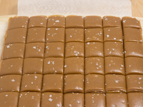 - Retirer du feu et incorporer le whisky restant et l'extrait de vanille. Verser immédiatement le caramel dans le moule carré préparer et laisser tempérer complètement à température pièce. Saupoudrer de fleur de sel et couper en carrés de 1 ¼ (3.2 cm) pour obtenir 26 caramels.