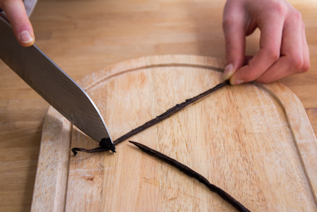 1. Dans une casserole à fond épais, mélanger le lait, le sucre, et la vanille. Placer sur feu moyen.