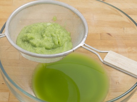 3. Filtrer à l'aide d'un tamis au-dessus d'un bol moyen et presser afin de récolter le plus de jus possible. Vous devriez obtenir environ ¾ tasse (180 millilitres) de jus.