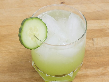 1. Couper quatre tranches de concombre d'une épaisseur de ¼ pouce (6 millimètres) et réserver pour décorer.