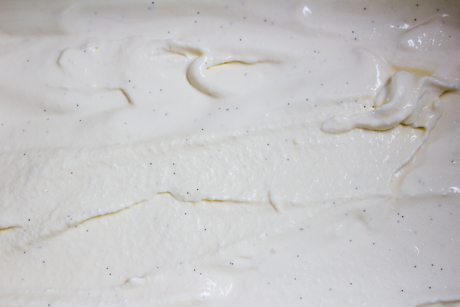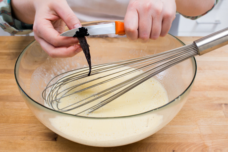 4. Transférez le mélange dans un grand bol, puis ajoutez les graines de vanille, la gousse de vanille, la crème à fouetter, l’extrait de vanille et le sel. Couvrir d’une pellicule plastique et réfrigérer pendant 8 heures ou toute la nuit.