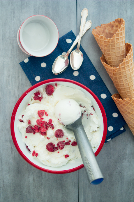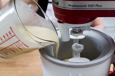 Note: Si vous ajoutez des morceaux de biscuits, de brownies ou du beurre d’arachide, le faire immédiatement après le barattage de la crème glacée et avant de la mettre au congélateur. Pliez votre choix d’ajouts dans la crème glacée barattée, puis congelez.