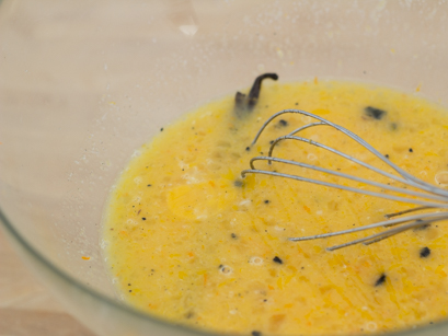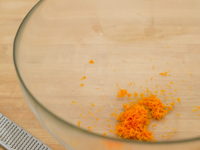 2. Recueillir le zeste et le jus d'orange et mettre dans le bol avec la vanille.