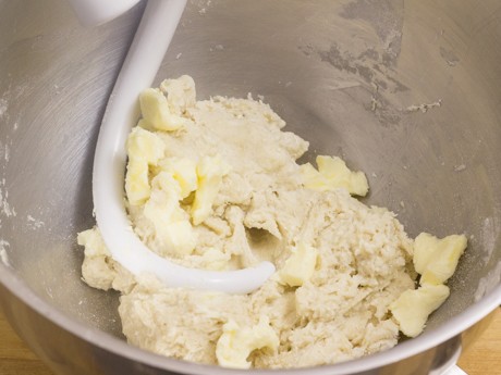 2. Mettre la farine à pain et la levure instantanée dans le bol d’un batteur sur socle munit du crochet et mélanger à basse vitesse pendant une minute. Ajouter le lait, le Sucre Granulé Redpath®, le sel et mélanger. Ajouter le beurre et mélanger jusqu’à ce qu’il soit incorporé, environ deux minutes. Augmenter à vitesse moyenne et continuer à mélanger pendant une minute.