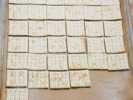 Étendre les biscuits soda en une couche sur la plaque à biscuits. Réserver.