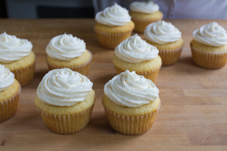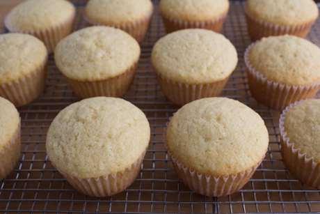 8. Cuire les petits gâteaux de 15 à 20 minutes, ou jusqu’à ce qu’ils deviennent brun dorés et qu’un cure-dent en ressorte propre. Laisser les petits gâteaux refroidir avant de glacer.