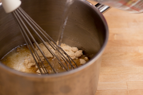 Pour faire la laque, mélangez tous les ingrédients dans une petite casserole et faire cuire à feu moyen. Laissez mijoter jusqu’à ce que le sucre soit dissous, soit environ cinq minutes.