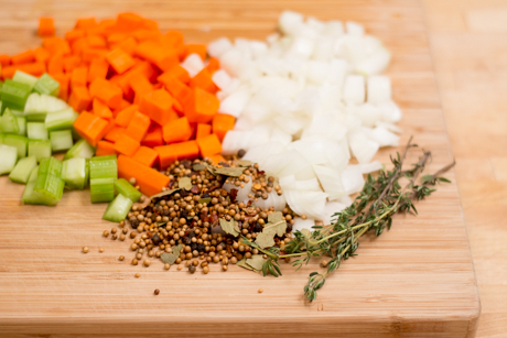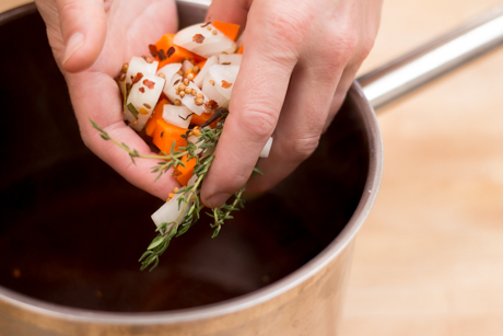 Retirez du feu et ajoutez le reste des ingrédients à la saumure, puis réfrigérez à découvert, jusqu’à la saumure soit froide, soit environ quatre heures.