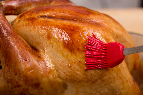 Badigeonnez la dinde avec la laque et répétez toutes les 30 minutes.