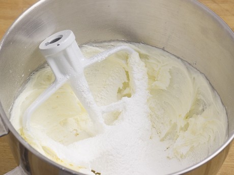 3. Ajouter le sucre à glacer une tasse à la fois et bien mélanger entre chaque addition. Mélanger à basse vitesse afin que le sucre à glacer ne s'échappe pas du bol puis augmenter à vitesse élevée jusqu'à ce que le glaçage soit lisse et prenne du volume.