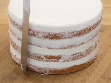 Pour assembler le gâteau nu aux amandes et à la noix de coco