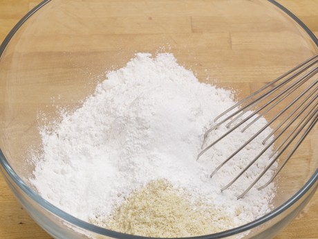 2. Combiner en fouettant la farine, la poudre d’amandes, la poudre à pâte et le sel dans un grand bol.