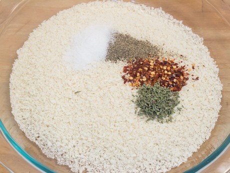 4. Mettre la chapelure panko, le sel, le poivre et les piments broyés dans un autre plat profond.