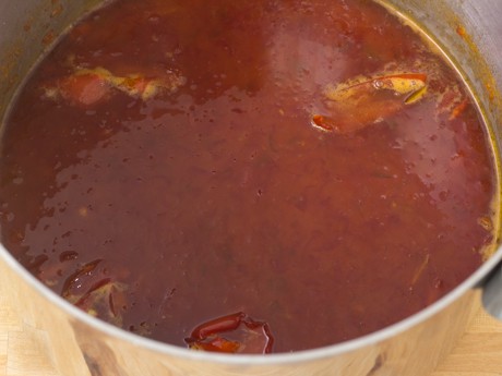 2. Transférez dans un grand chaudron et ajoutez le reste des ingrédients en prenant soin de saupoudrer la pectine en petite quantité afin de ne pas former de grumeaux.