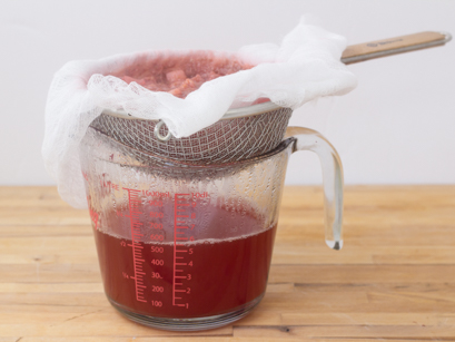 Au moment d’égoutter le liquide, ne pas presser les fruits, car la gelée ne sera pas complètement translucide et la couleur aussi belle.