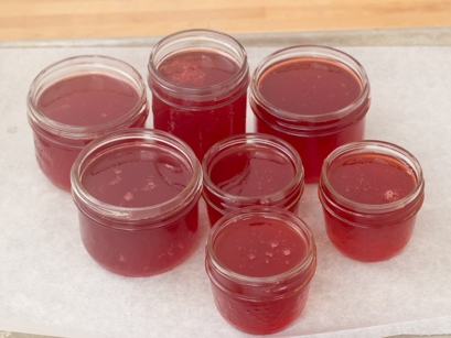 7. Verser la gelée dans des pots à conserves à l'aide d'une louche en gardant un espace de ¼ po (6 mm) et essuyer le rebord avec une guenille chaude.