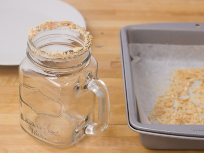 5. Humidifier avec de l'eau le rebord du verre et trempez-le dans les amandes grillées.