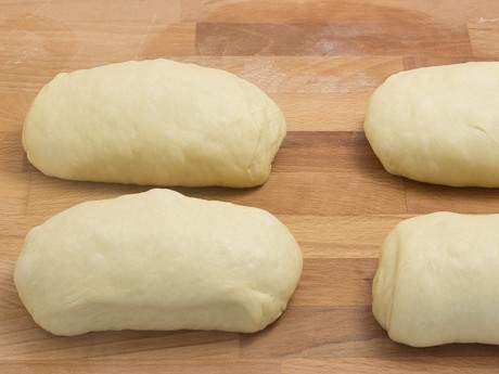 6. Diviser la pâte en quatre portions égales (environ 310 g par portion) et former en cylindre d’environ 5 po (13 cm) de longueur. Couvrir et laisser reposer pendant 10 minutes.