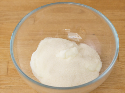 2. Dans un petit bol, saupoudrer la gélatine sur le yogourt et laisser agir de cinq à dix minutes. La préparation gonflera et deviendra spongieuse. Réserver.