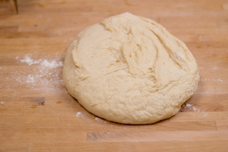 7. Pétrir la pâte avec les mains légèrement farinée sur une surface légèrement farinée jusqu'à consistance lisse , 4-5 minutes.